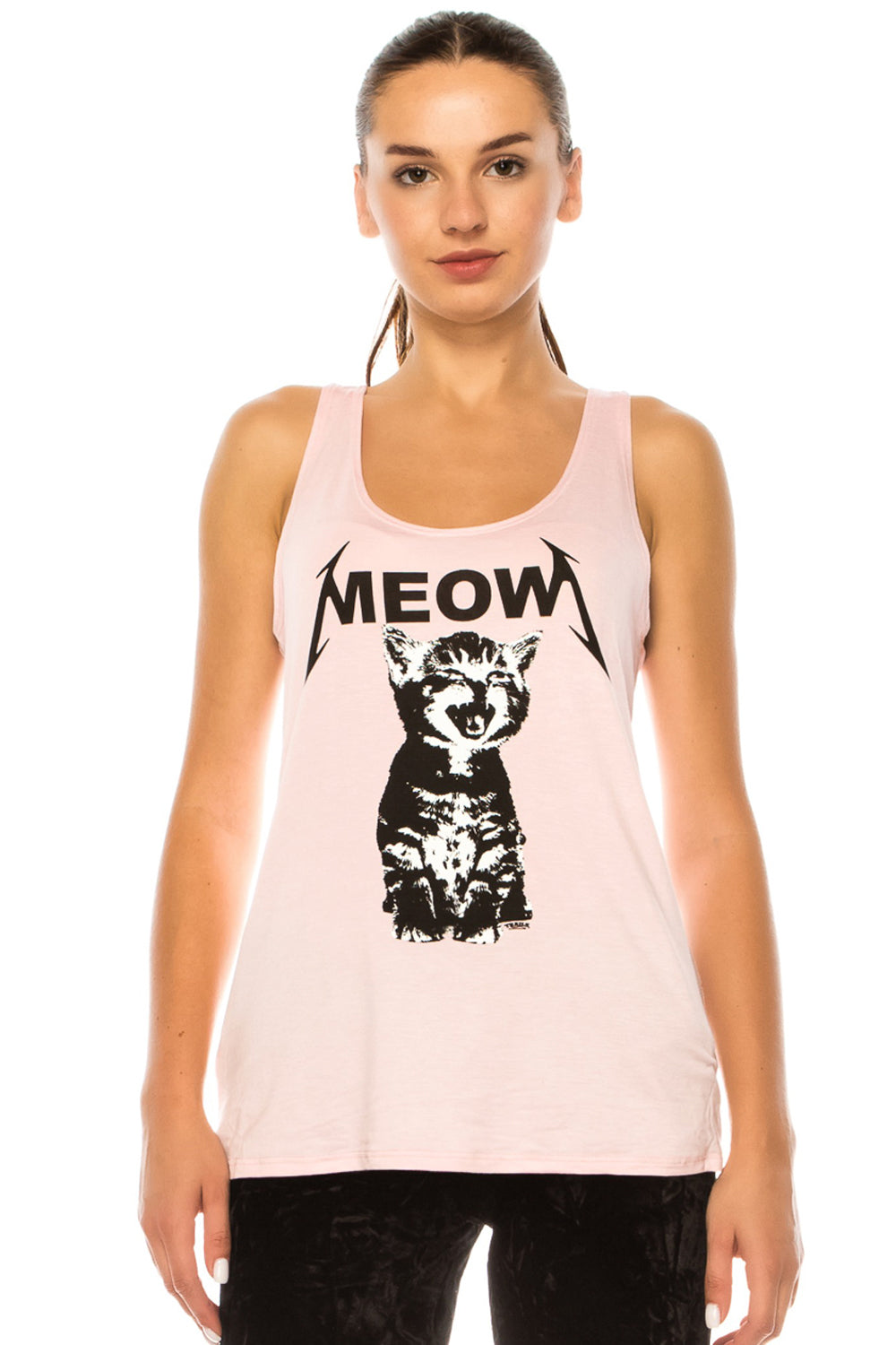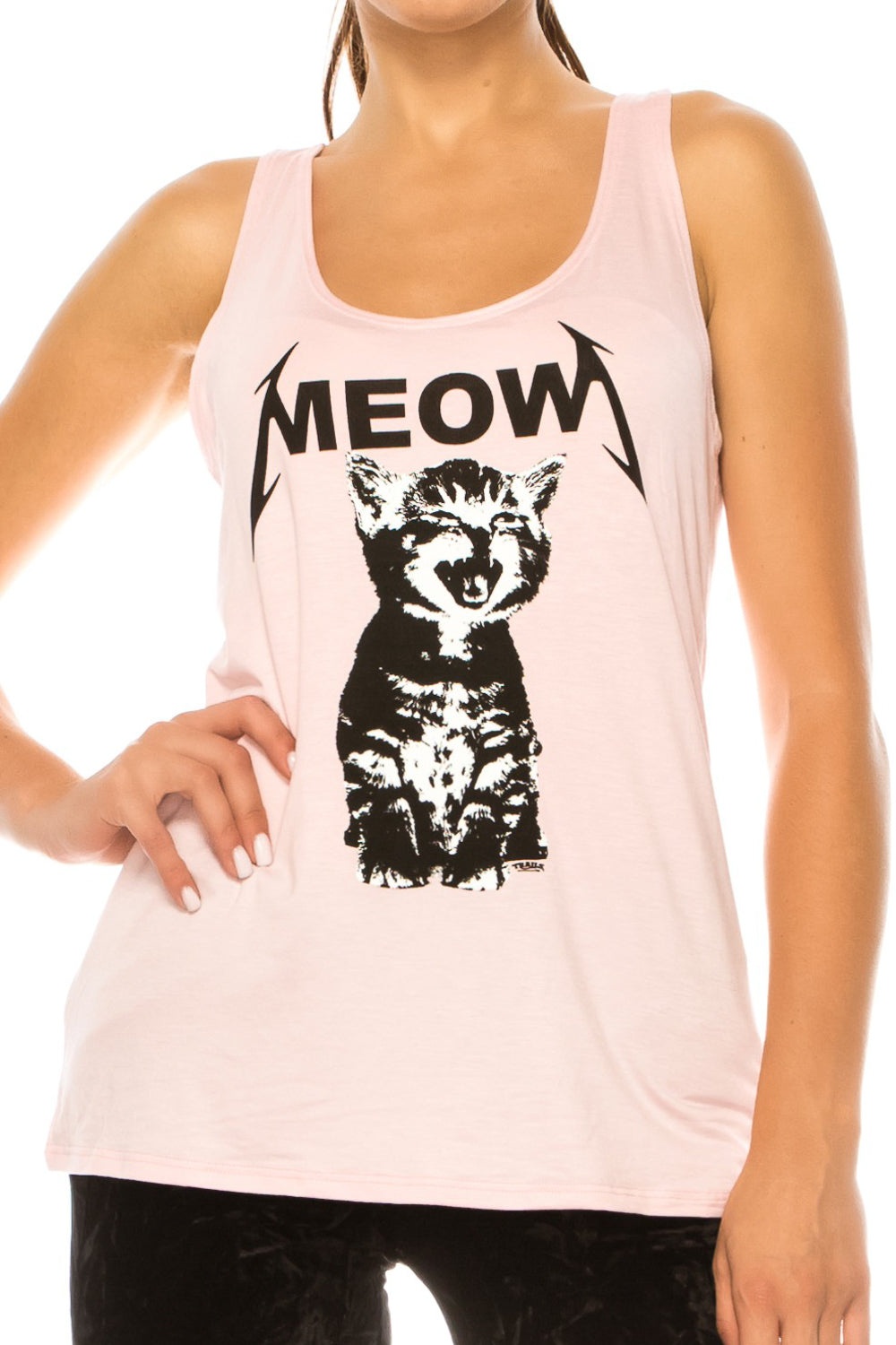 This MEOW LICKA cat Tank Top is the perfect combination of soft, lightweight comfort and style. The red racerback design and eye-catching screen printed front make a bold statement. And with its perfect fit, the model's in the red has 5'9" frame with measurements of 33"-26"-38" makes this top look dynamite when she's wearing a size Small. The model wearing the light pink is 5'8" 32"-24"-36 also wearing a size small.