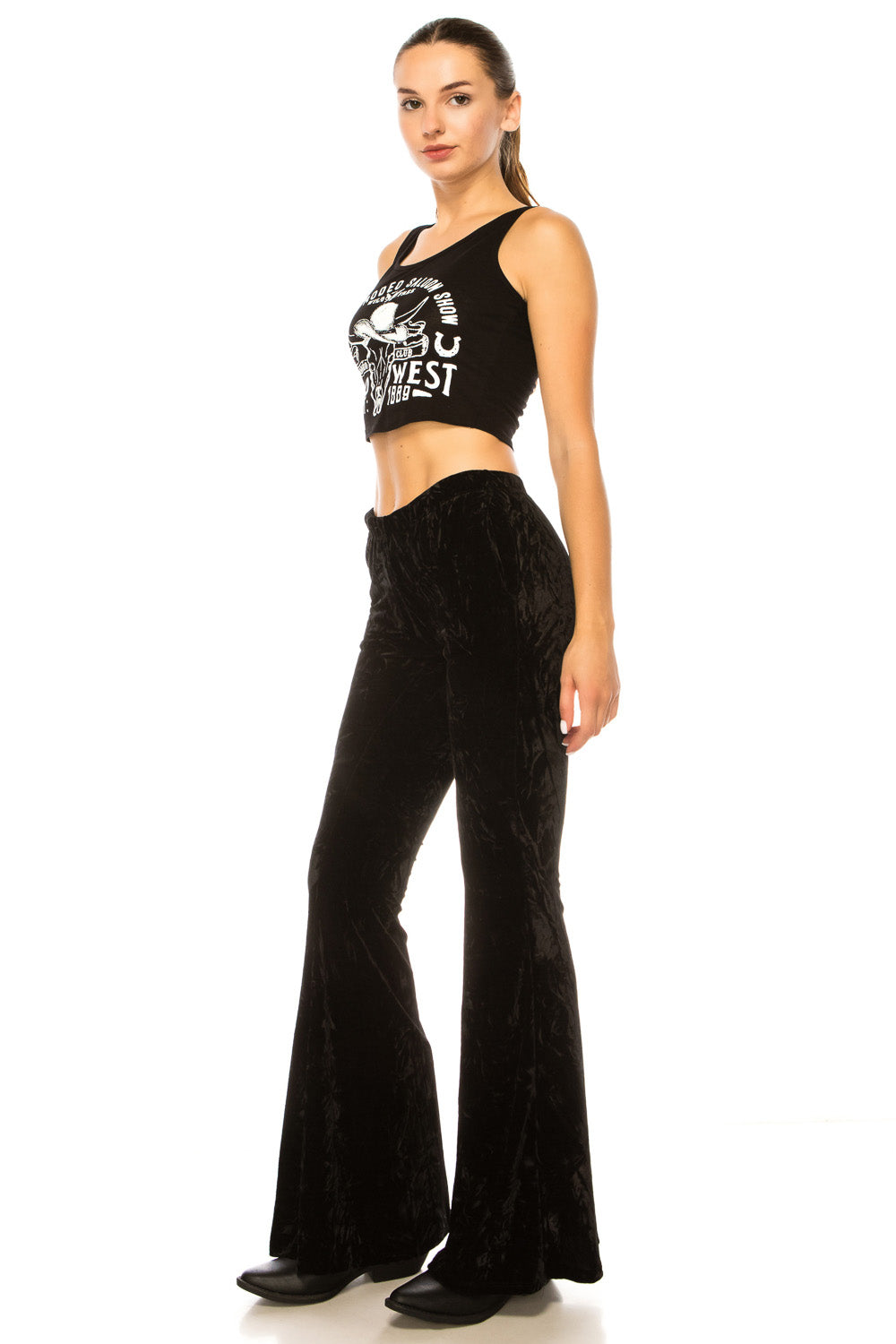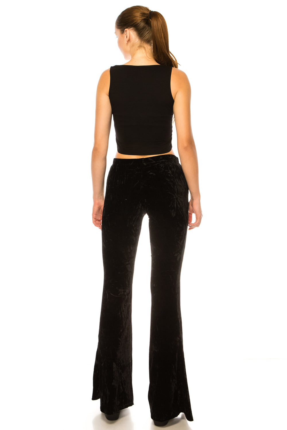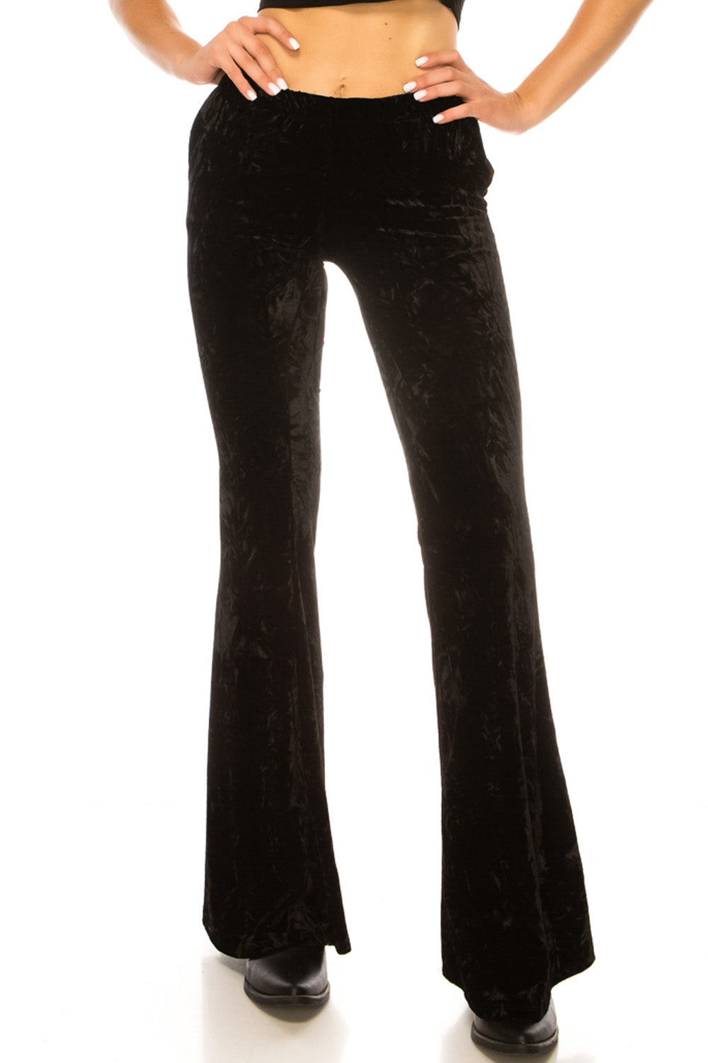 Luxuriously soft BLACK VELVET BELL BOTTOM FLARE PANTS hug curves with a poly-spandex blend crushed velvet that's a dream to wear. Designed with a pockets and an elastic waistband for utmost comfort, these pants are made for movement. With a 33" inseam and 8" rise, they look amazing on any body style. Step out with confidence in the perfect pair of pants.