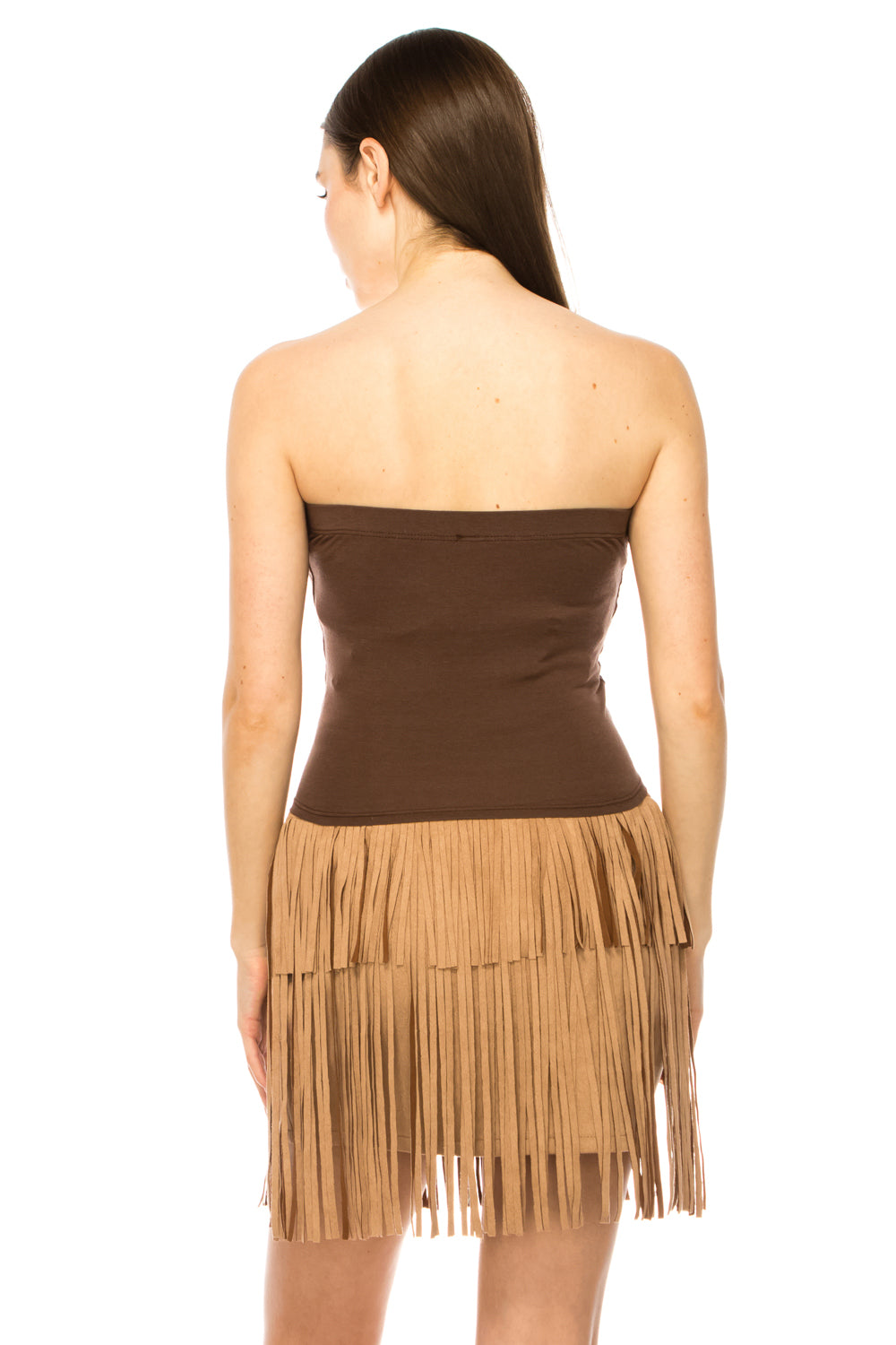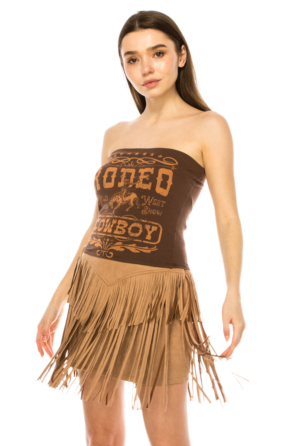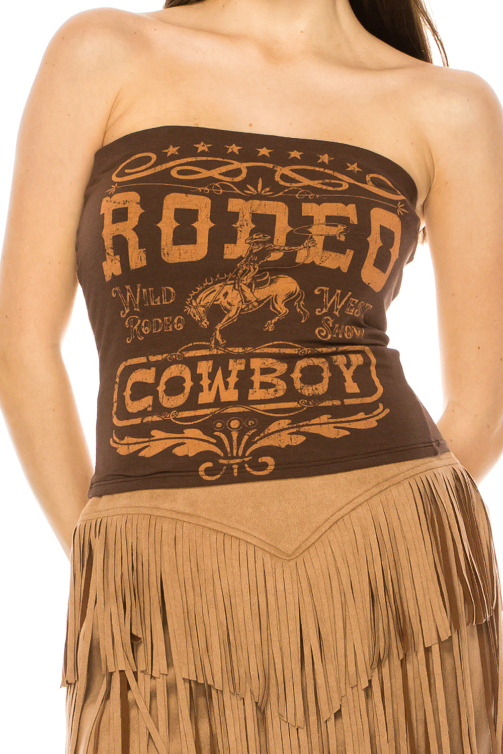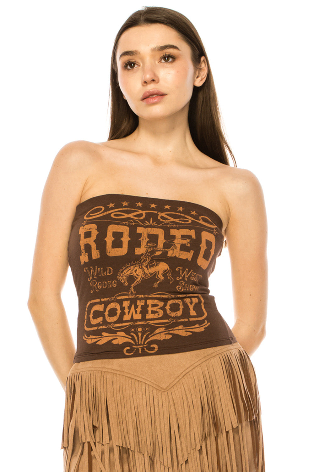 Crafted from a premium cotton-spandex blend, this brown tube top delivers the perfect balance of support and breathability for all-day wear. The eye-catching front graphic adds instant personality to your wardrobe, while the stretchy fabric moves with you effortlessly. Whether you're heading to a festival or styling a casual look, this versatile piece hugs in all the right places without sacrificing comfort. Model is 5'8" with measurements 34"-24"-35" and is wearing a size small.