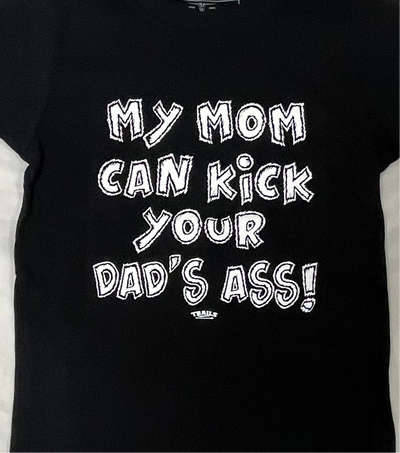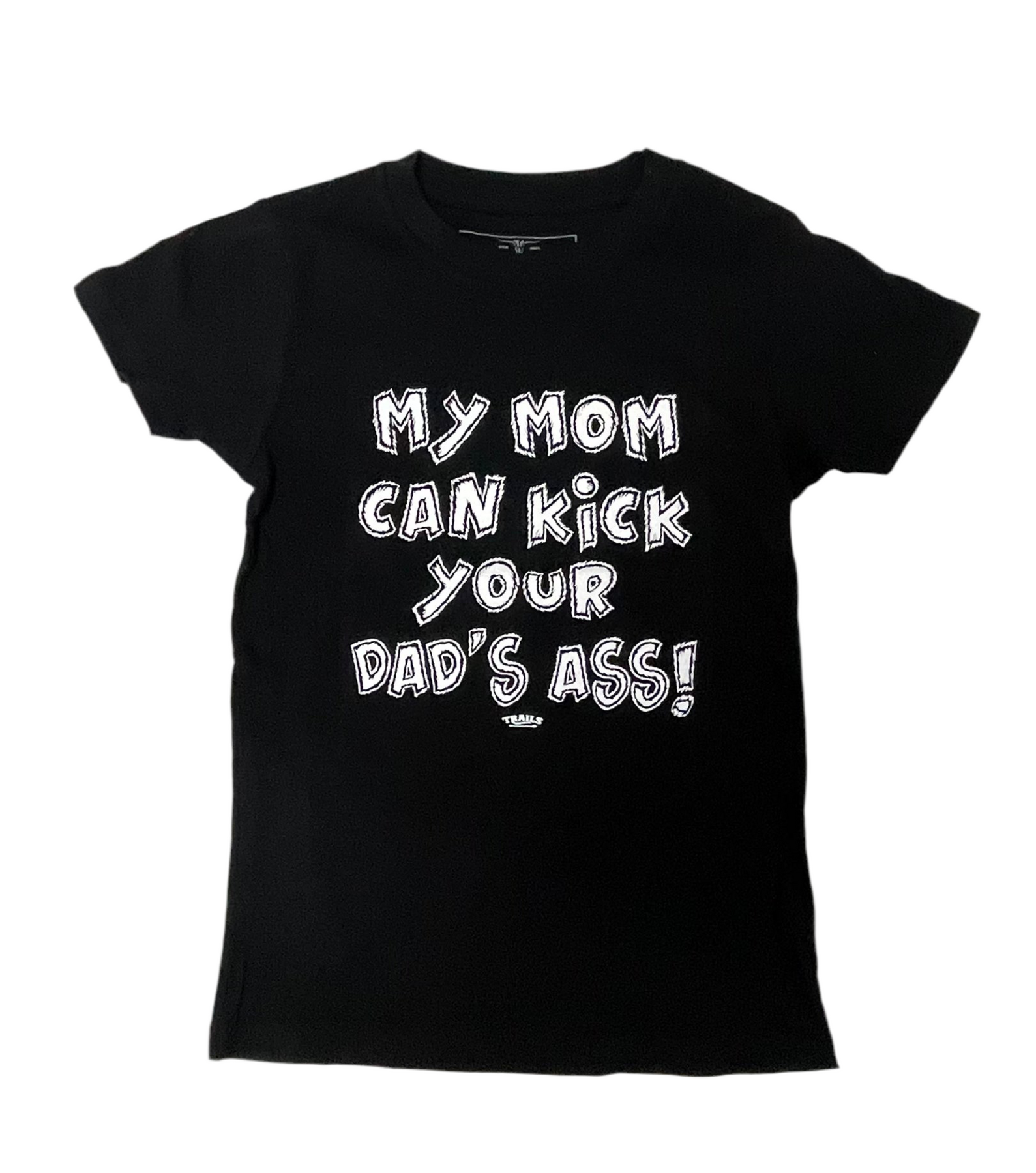 My Mom can Kick your Dads A$$ youth tee. 100% cotton t shirt with screen print on front.